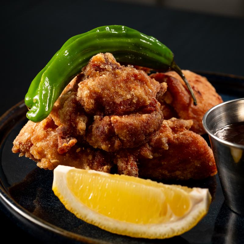 Japanese seasoned fried chicken, dragon sauce, kewpie mayo, Ichimi, lemon