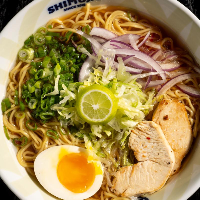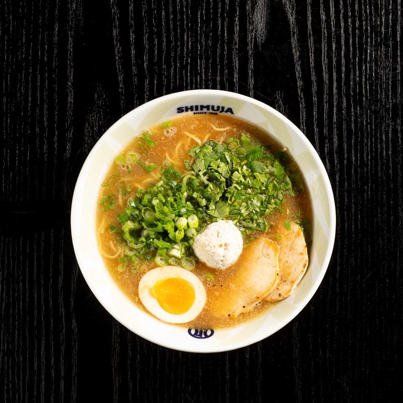 2 pcs Chicken, Yuzu Chicken Meatball, Cilantro, Scallion, Half Soft Boiled Egg, Thin Straight Noodles