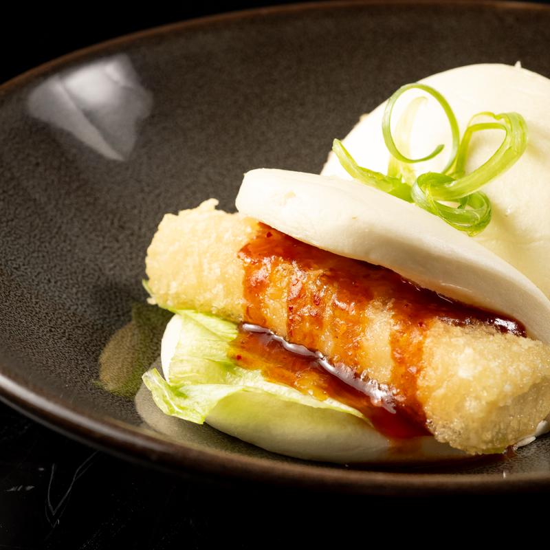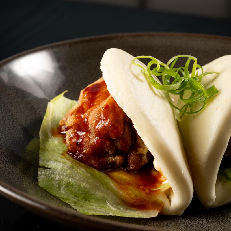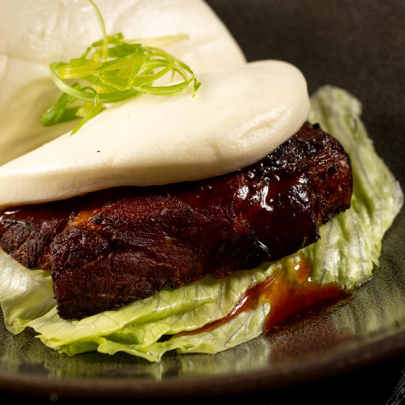 All buns are served with steamed bun, iceberg lettuce, shimuja BBQ sauce