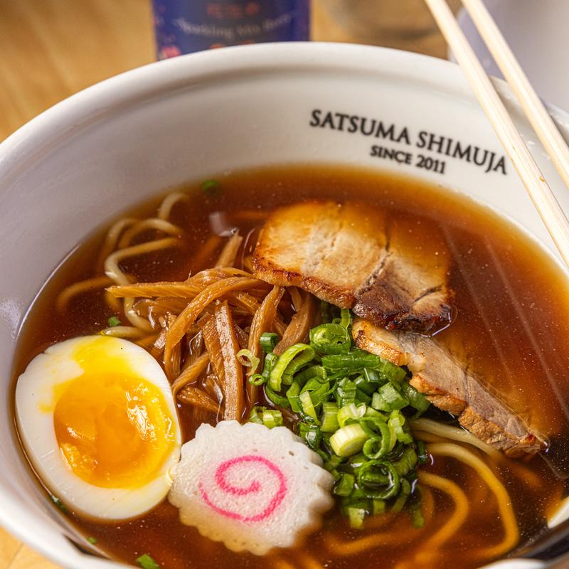 4 pcs Smoked Pork Belly, Mixed Veggies, Scallions, Fried Burdock, Whole Soft Boiled Egg, Naruto, Nori, Thick Wavy Noodles