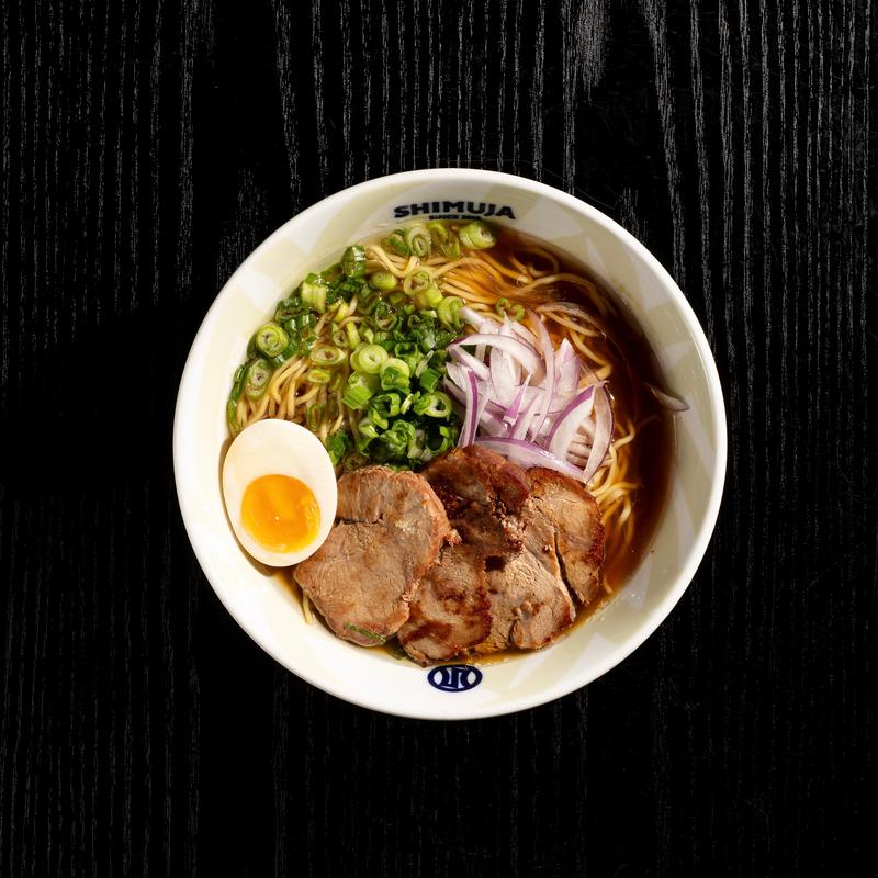 4 Pork Shoulder, Red Onion, Scallion, Half Boiled Egg, Thin Straight Noodles